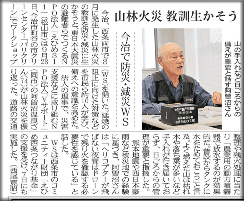 本助成プログラムによるNPO法人「えひめ311」さんの活動が愛媛新聞に掲載されました。